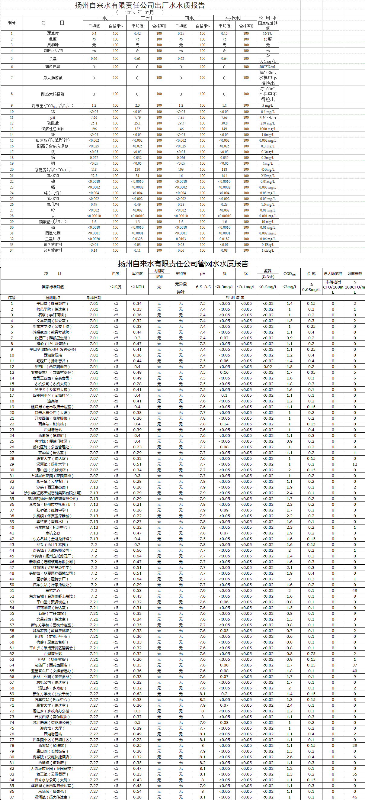 自來(lái)水水質(zhì)報(bào)告(2015年7月份)