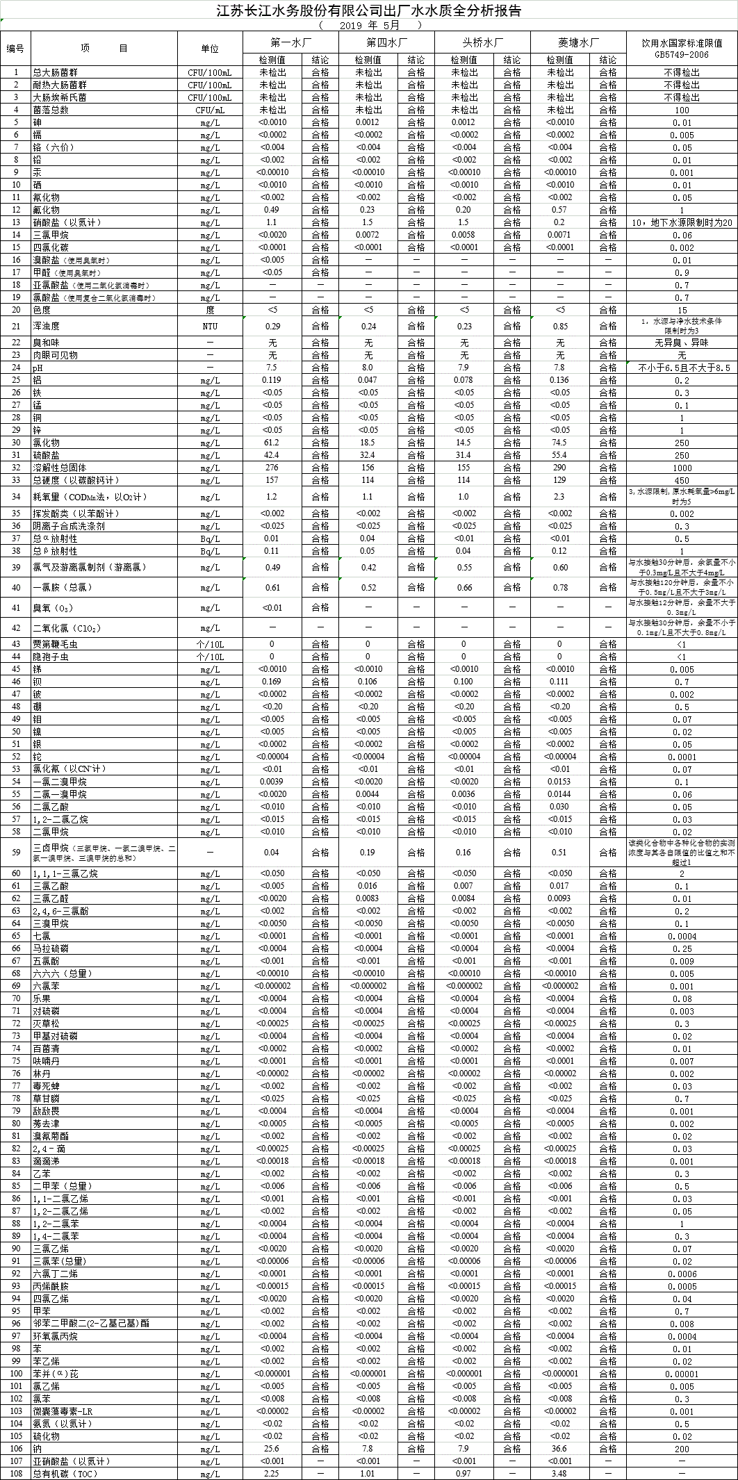 江蘇長江水務(wù)股份有限公司管網(wǎng)水水質(zhì)報(bào)告(2019年5月)