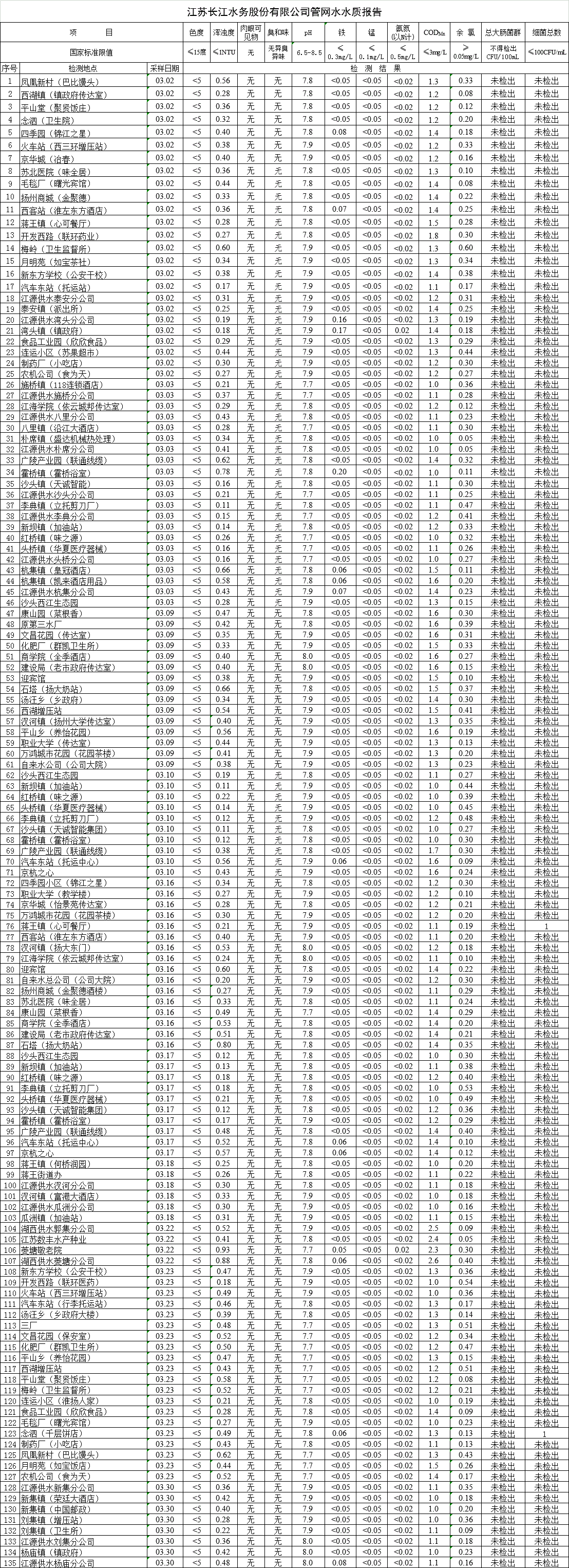 江蘇長(zhǎng)江水務(wù)股份有限公司管網(wǎng)水水質(zhì)報(bào)告(2020年3月)