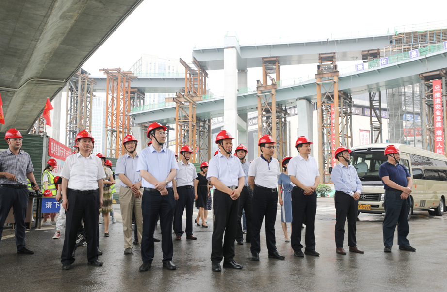 在潤(rùn)揚(yáng)路--江陽路互通工程現(xiàn)場(chǎng),夏心忠副主任介紹了國(guó)資委對(duì)城控集團(tuán)在改革發(fā)展方面指導(dǎo)支持的具體做法。葉善祥介紹了城控集團(tuán)主體信用等級(jí)提升工作情況及潤(rùn)揚(yáng)路快速化改造(江陽路互通立交)工程項(xiàng)目進(jìn)度、施工計(jì)劃、難點(diǎn)問題。