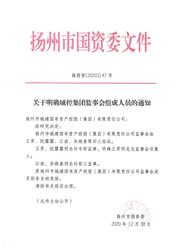 關(guān)于明確城控集團監(jiān)事會組成人員的通知