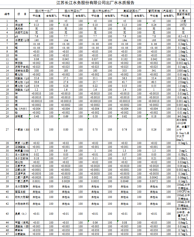 江蘇長江水務(wù)股份有限公司出廠水水質(zhì)報告 ( 2021 年 12月 )