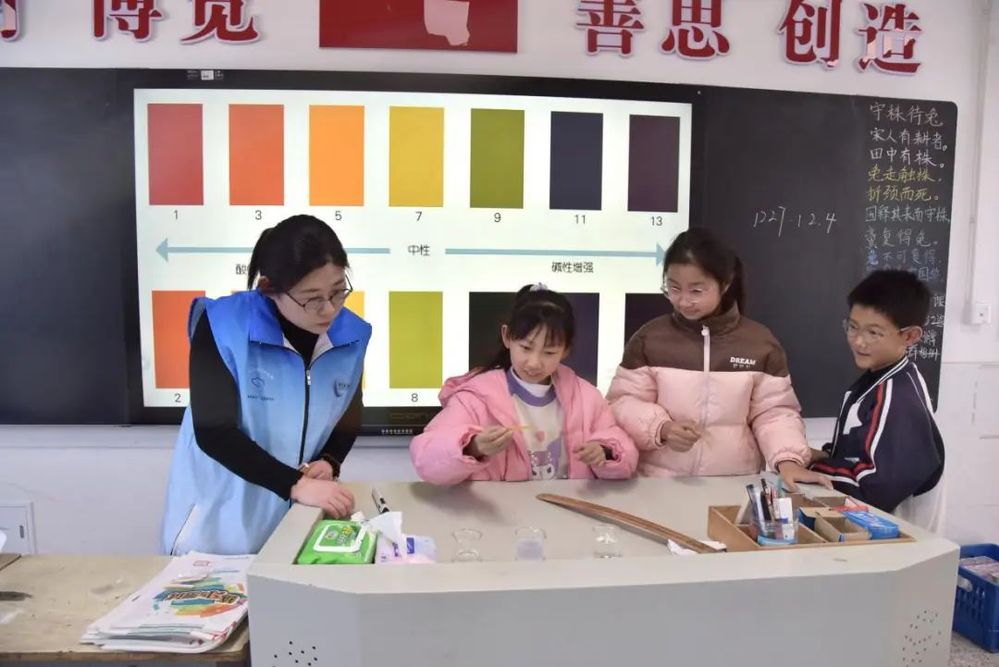 活動現(xiàn)場,志愿者通過“理論+實踐”雙線并行的方式,向?qū)W生們普及水資源知識。理論環(huán)節(jié)中,志愿者以通俗易懂的語言講解了水資源的稀缺性、日常節(jié)水技巧以及長江流域水生態(tài)保護(hù)的重要性。實踐環(huán)節(jié)則設(shè)置“水的酸堿度”小實驗,學(xué)生們在指導(dǎo)下動手操作簡易酸堿度檢測小實驗,觀察不同酸堿度下試紙的變化,讓同學(xué)們深刻理解健康飲水的重要性。