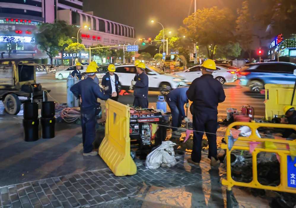 此次改造工程任務(wù)艱巨,停氣范圍廣、焊接工作量大,對施工組織和技術(shù)保障提出了極高要求。為了將施工對市民生活和城市交通的影響降至最低,揚州中燃精心策劃,組織了兩支經(jīng)驗豐富的施工隊伍同時施工,保障施工流程順暢高效進行。5月28日21點,當城市逐漸進入夢鄉(xiāng),施工人員們精神抖擻地投入到緊張的施工中。他們克服夜間作業(yè)視線差、體力消耗大等困難,嚴格按照施工規(guī)范和安全標準,爭分奪秒推進焊接、新舊管道切換等工作。經(jīng)過全體施工人員的不懈努力,至次日清晨6點完成改造、恢復(fù)供氣,確保周邊居民能夠正常使用燃氣。