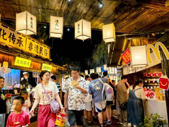 作為江蘇省首批數(shù)字人民幣文旅應用集聚區(qū),街區(qū)不斷創(chuàng)新“揚州老字號+數(shù)字文創(chuàng)”的文旅消費模式,謝馥春、三和四美等20余家老字號推出數(shù)字人民幣專屬折扣。此外,街區(qū)還打造“月下東關·春日雅集”“漢森熊·游園會”等非遺市集,日均吸引超1.95萬人次參與拓印團扇、生肖剪紙等互動體驗,推動傳統(tǒng)商戶數(shù)字化轉型率有效提升,形成“日賞非遺、夜享雅韻”的全時段消費閉環(huán)。