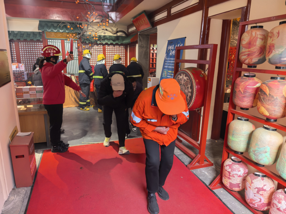 首先,組織參訓(xùn)人員進(jìn)行了電氣火災(zāi)滅火疏散實(shí)操演練,模擬場景為東關(guān)街98號(hào)冬榮園發(fā)生火情,當(dāng)班人員發(fā)現(xiàn)并大聲呼救、報(bào)警,醫(yī)療救護(hù)組人員接到應(yīng)急預(yù)案啟動(dòng)指令后攜帶應(yīng)急救護(hù)物資,對現(xiàn)場受傷人員進(jìn)行了臨時(shí)救護(hù)。同時(shí),滅火組第一時(shí)間趕赴微型消防站,穿戴消防戰(zhàn)斗服,使用滅火器進(jìn)行滅火,演練過程中,隊(duì)員們聽從指揮、統(tǒng)一調(diào)動(dòng)、密切配合,充分檢驗(yàn)了員工及商戶面對電氣火災(zāi)的應(yīng)急處置能力和協(xié)同作戰(zhàn)水平。